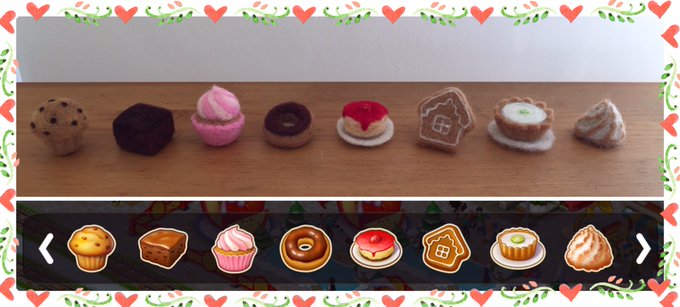 3 77 上 羊毛フェルトスイーツ群完成🧁🥮🥧 下 使用した参考モチーフ☺-💞 #羊毛フェルト 22/01/18 11:05
