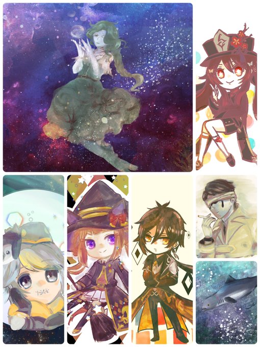 直近で描いた絵まとめてみたけど最近あんま線画描かなくなったんだよな フラットオイルブラシ 新しんかい水彩 うみのいえ このへんで描いてます