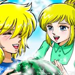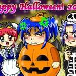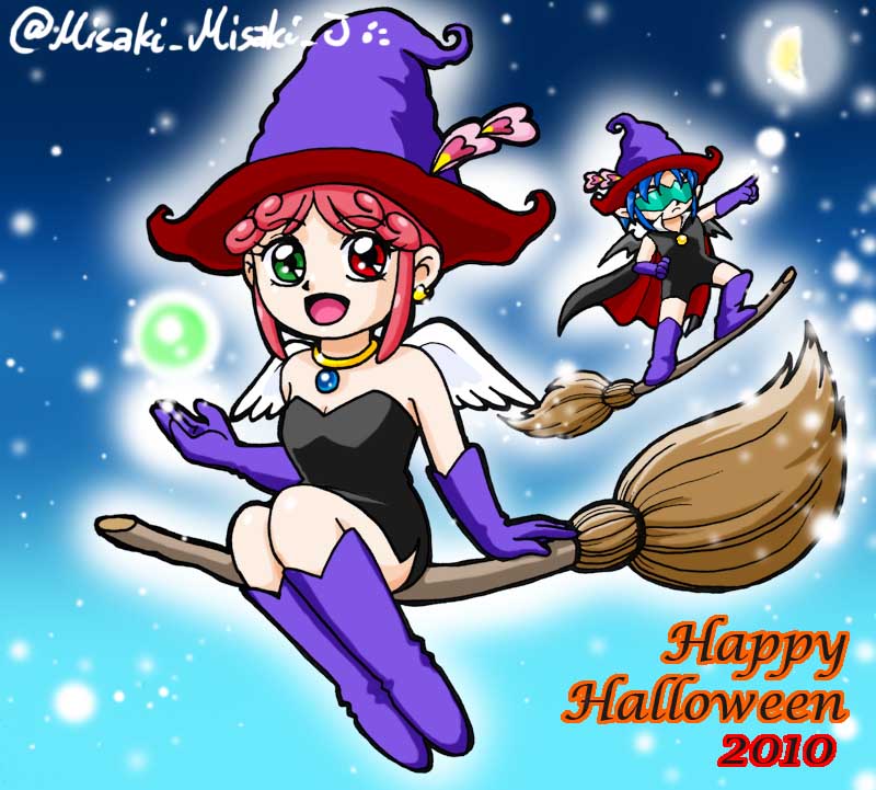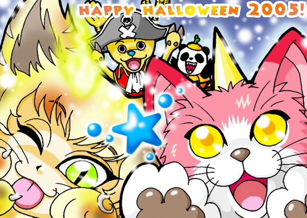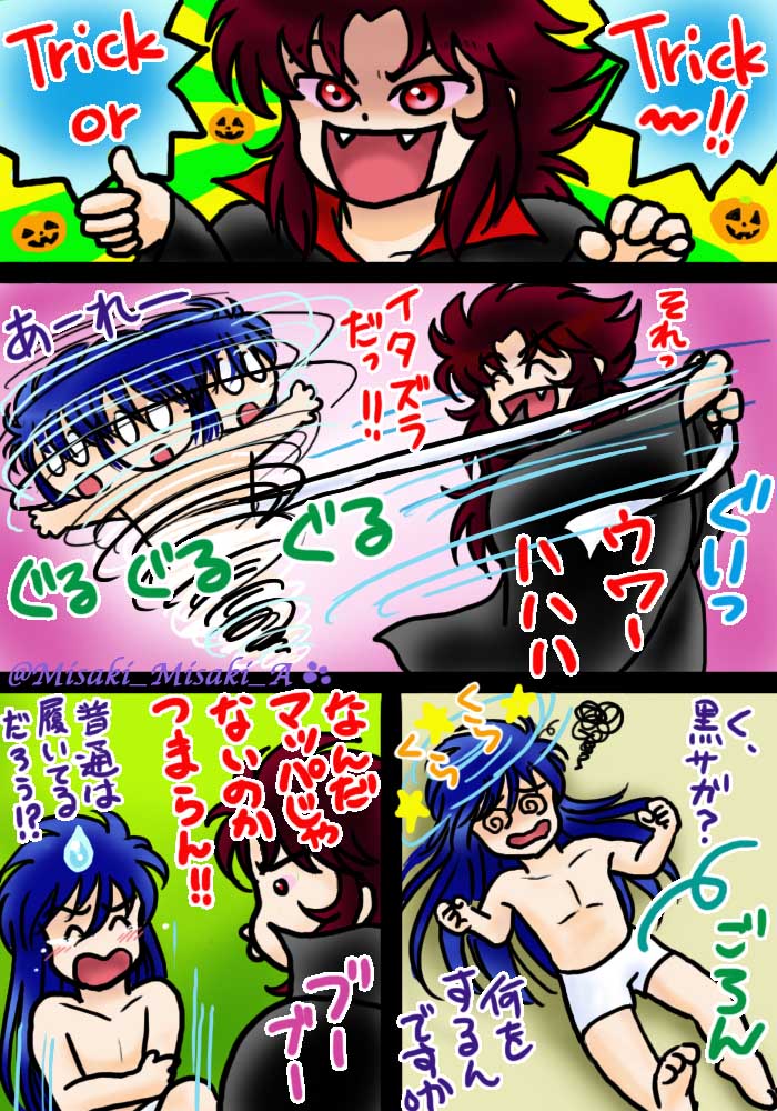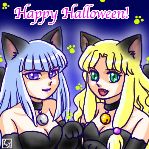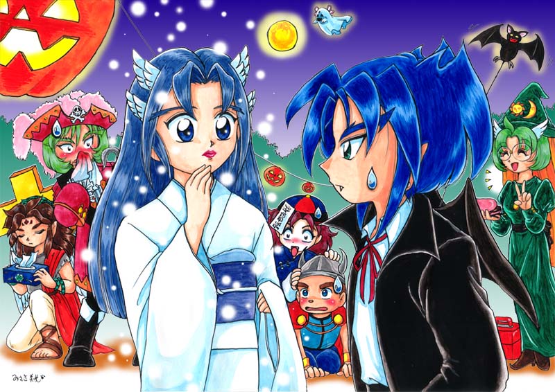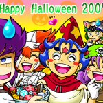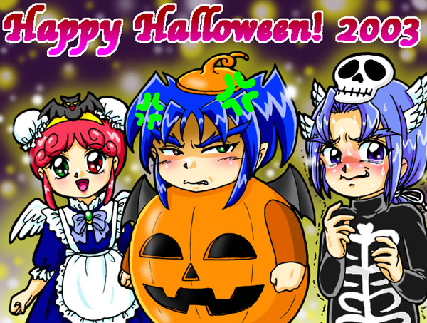 #歴代ハロウィン絵を上げよう 【ビックリマン編】 ほぼアズール&コーラル兄妹(BM2000)ですね😅 1枚目なんて2001年で、まだCGがよく分からなくて、手描き絵をスキャンして背景を加工しましたよ(笑)