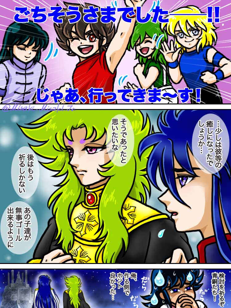#獅子座のアイオリア生誕祭2023 再掲や過去絵や落描きばっかりですけど😅 アニメ初期の『頼れるお兄さん』感が大好きなので、星矢や貴鬼をすぐ肩車して歩いて(走って?)欲しい☺️💕 それから描いた事無いし表に出さないけど、うちのリアは魔鈴さん好きです(笑) ← これもアニメ初期設定