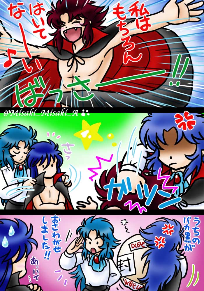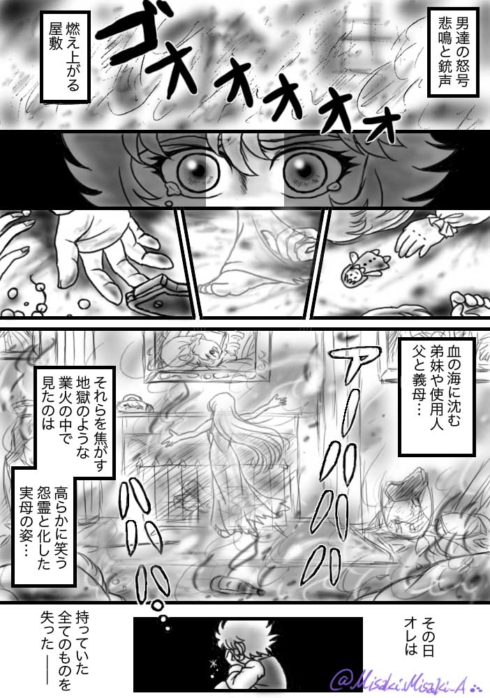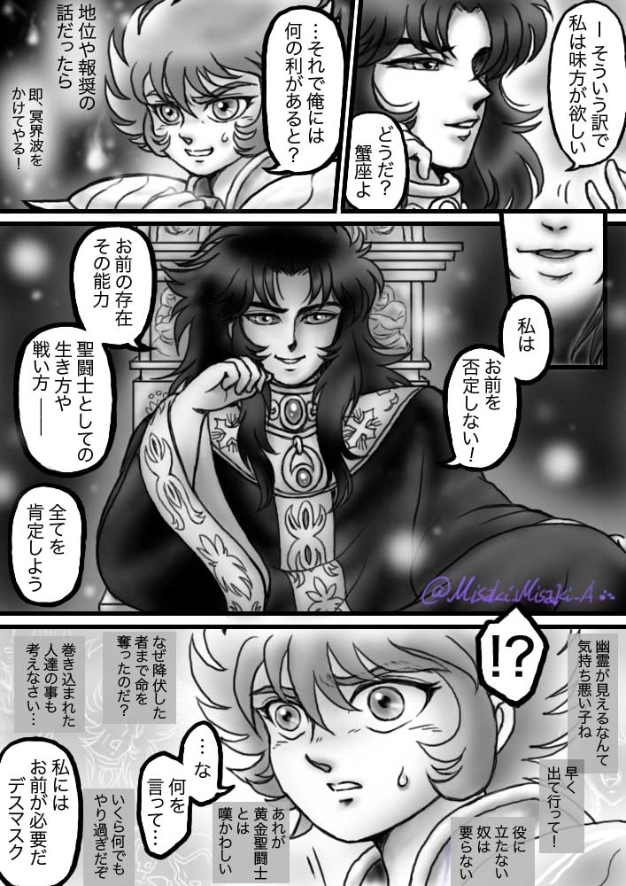 #みなさん2年前の今頃はどんな絵描いてましたか 『描く予定のない漫画を1ページだけ』というのを描いてました☺️ 1. うちの子蟹の過去 2. 子蟹と黒サガ 3. LC 牡牛座のテネオ(35歳くらい妄想) 4. DW の黒猫マオマオの正体(予想外れました😅)