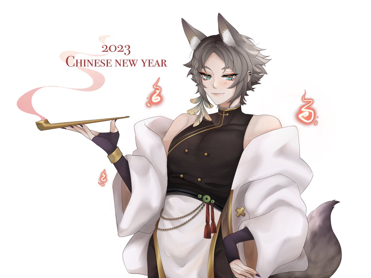 Just want to draw him in his new HAWT outfit for lunar year pack ehe, I just added extra from the original cuz I don’t know what it looked like exactly- 🦊🧡👁👄👁 #MystArt #MystaRias