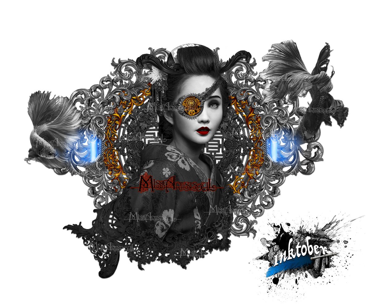 I've been working on the concept of day 1 (#InktoberFish) since September. But there is little left... 😅 #steampunk #japaneseculture #japaneseart #steampunkstyle #inktober2020 #intuospro #madewithwacom #photoshopcc #illustration #digitalart #photomanipulation #freelancer
