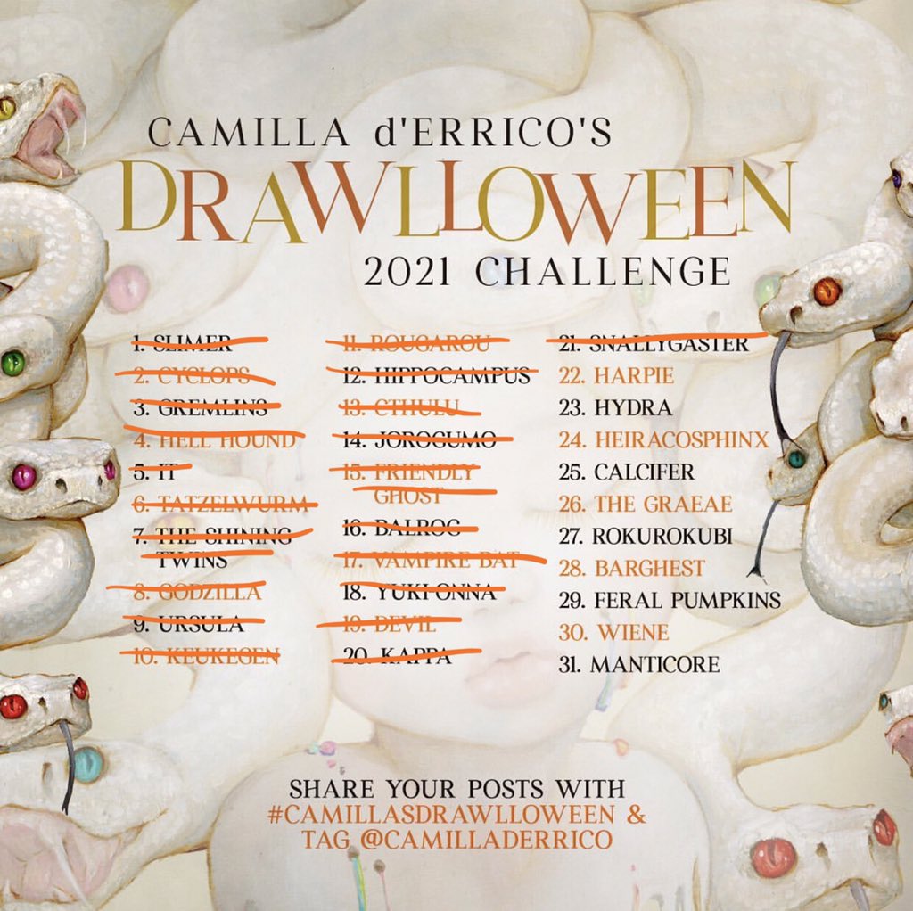 Here is my version of my #tatzelwurm for #day6 #camillasdrawlloween ! Tatzelwurm is from a Alpine folklore that is said to have a poisonous breath. @camilladerrico #drawlloween2021 #inktober #pencilart #pencilartist #art #drawing #halloween #illustration #camilladerrico
