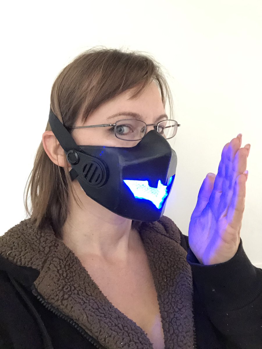 I made this amazing #facemask yesterday. Heat formed shape, HEPA filter, blue LEDs backlit #batman custom #respirator. Treat communicable illness as the villain. #covid #creations #cosplay