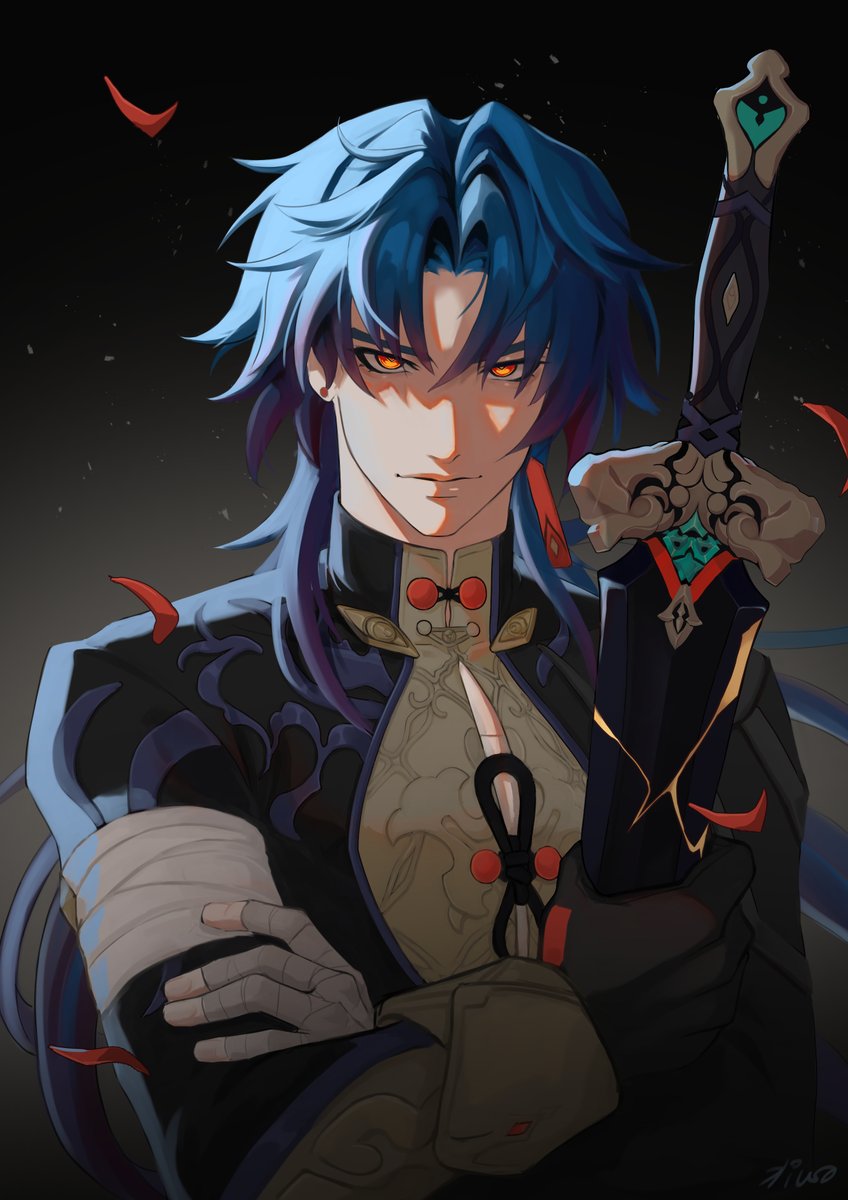 I started playing Genshin for grandpa Zhongli, but i actually drew his simp boyfriend first 🙆♀️🤷♀️ #genshinimpactfanart