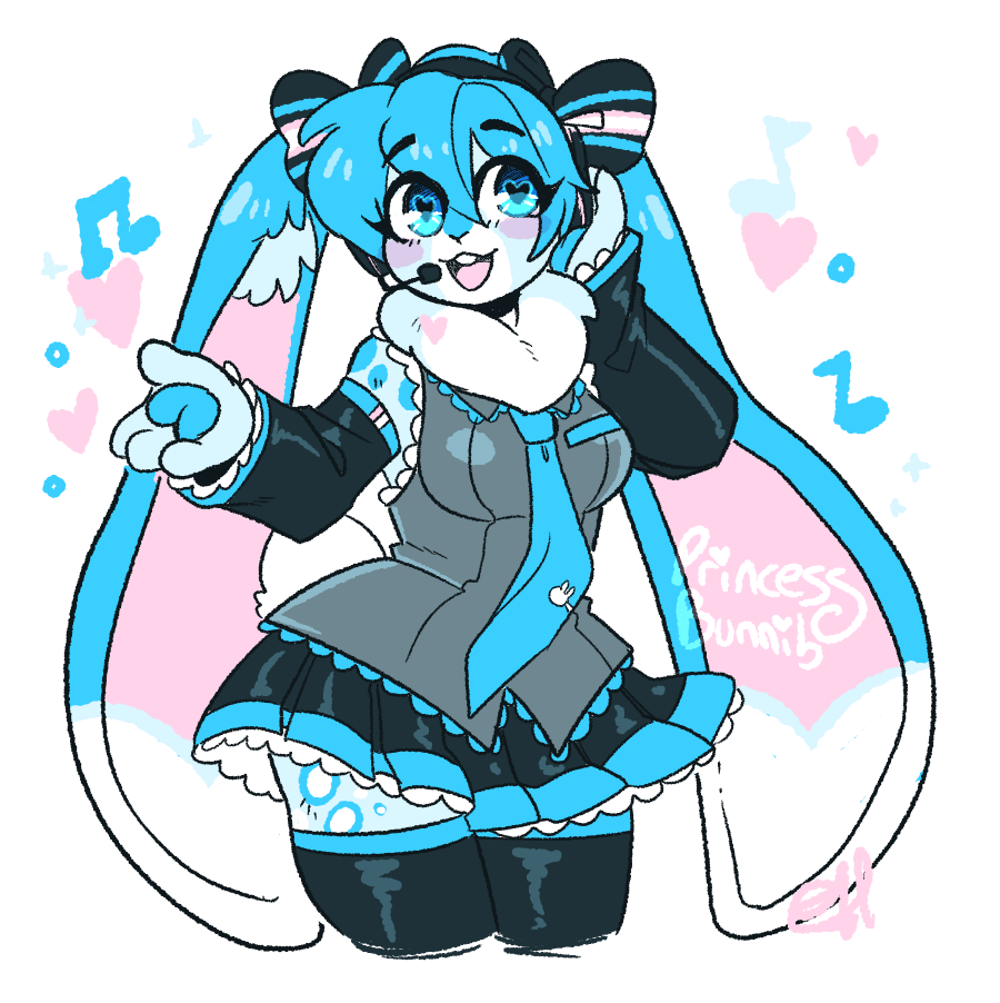 its my birthday and its also #MikuMonday so i guess its Miku Bunday? Anyway have some Hatsune Biku!!! #hatsunemiku #furry #anthro #bunny #doodleheaven #miku