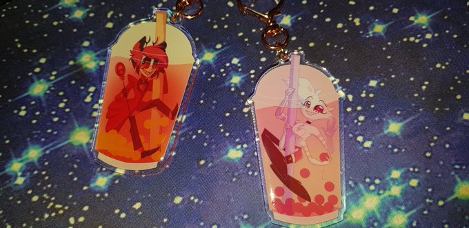 I finally got my acrylic charm samples!! 💕 #hazbinhotel #hazbinhotelfanart #hazbinhotelalastor #HazbinHotelAngelDust