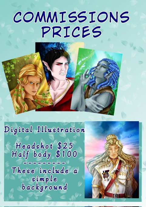 To new peeps and old reminder I have commissions open (price plans can be discussed). Open for most themes/genres. #commissionsopen #smallartist #DnD #fantasyart #digitalillustration #Indieartist