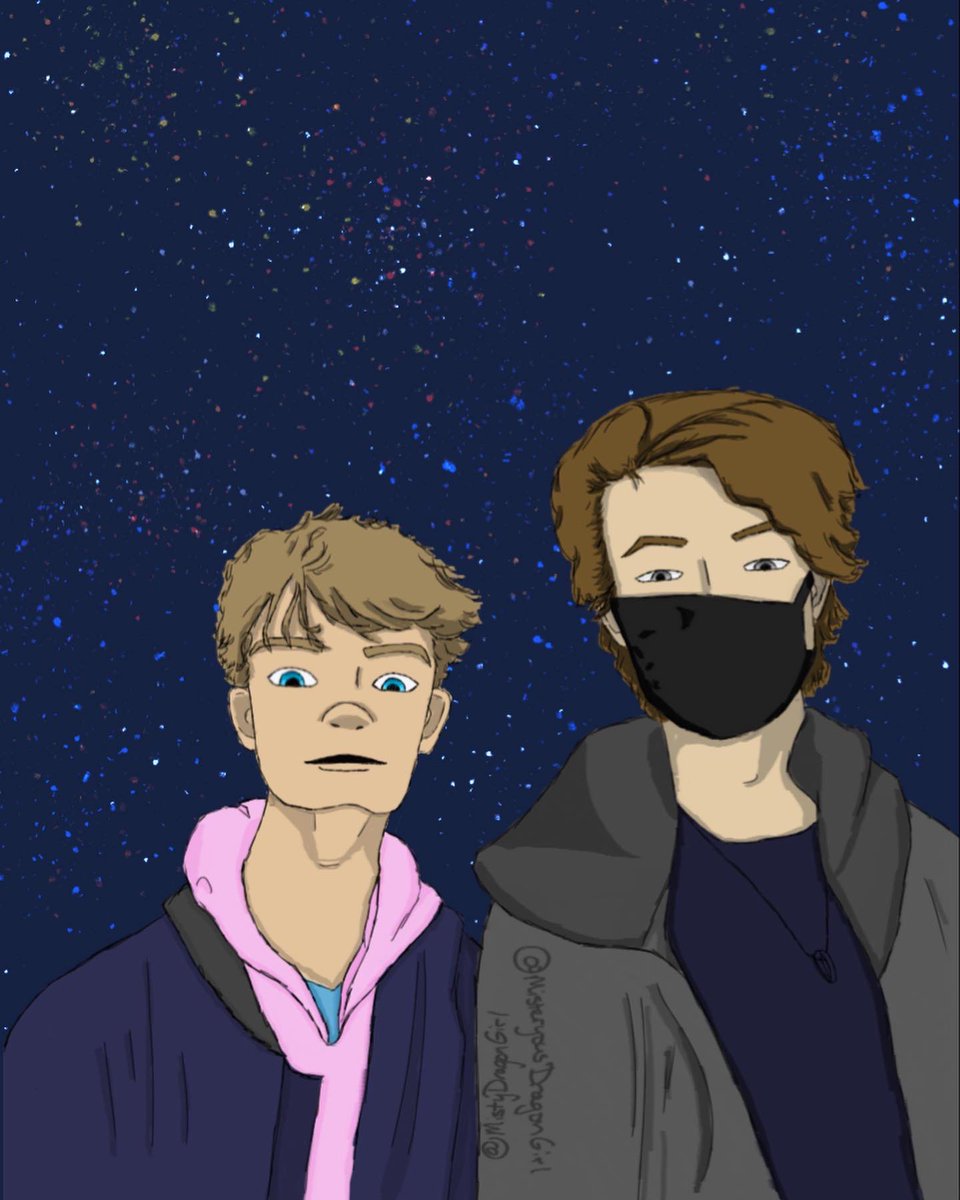 I drew alliumduo. I suck at backgrounds so i gave them a starry night sky instead of what the background originally was. #tommyinnit #tommyinnitfanart #ranboo #ranboofanart