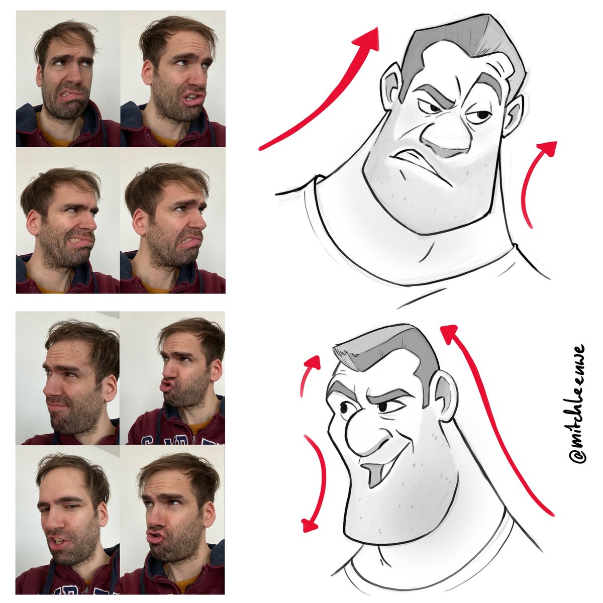 Mega post about drawing expressions and heads. Let’s start with using reference. And the best reference is using real life! Use a mirror, pictures, or real life models. Nothing beats drawing what you see with your own eyes! A thread 🧵 1/22