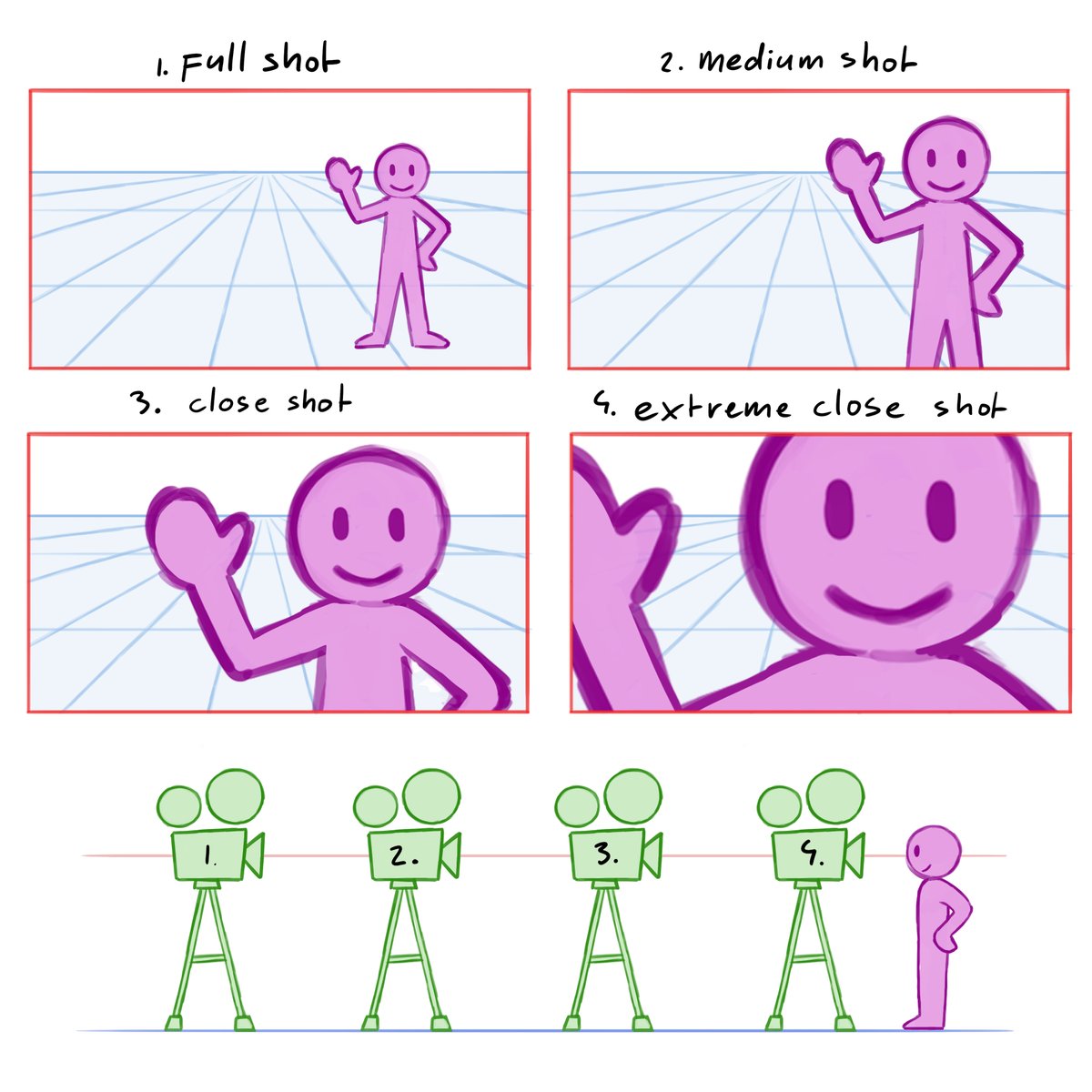You can also choose how much to zoom in on a character. Do you want to show the character full body for example to show the clothing or to show it's a cop, or zoomed in on the head to show the expression. 3/7