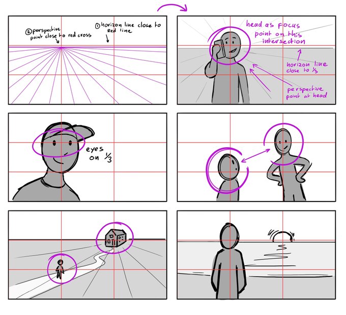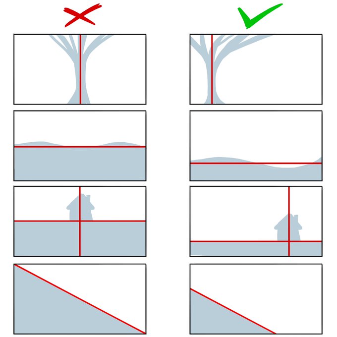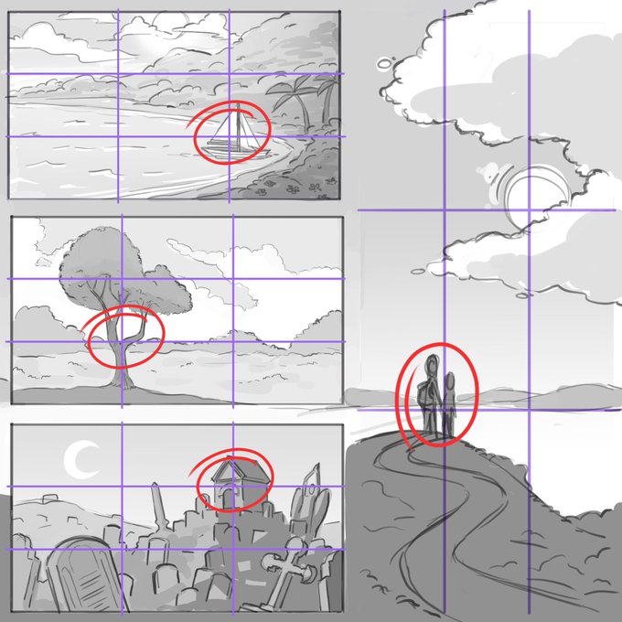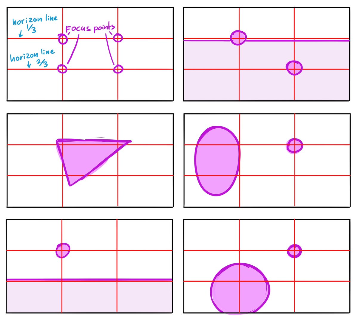 There are lot's of compotitions. The most famous one is the golden ratio. The golden ratio is also often seen in nature! It's a way to give a composition a natural feel to it. 4/7
