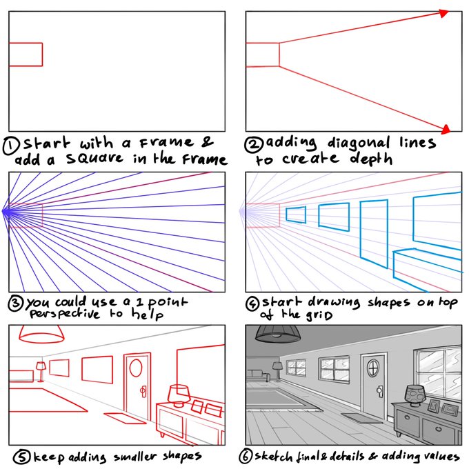 Working on a new course about making comics. In this one im sharing some tips about using perspective and showing how to quickly draw a room. A thread 🧵 1/8