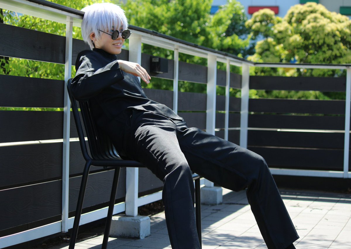 1 3 くそあちぃって言ってる瞬間でございます。薄目で見ると脚長五条悟っぽい?😎 #コスプレ #五条悟 #コスフェス名古屋 22/05/31 10:50
