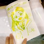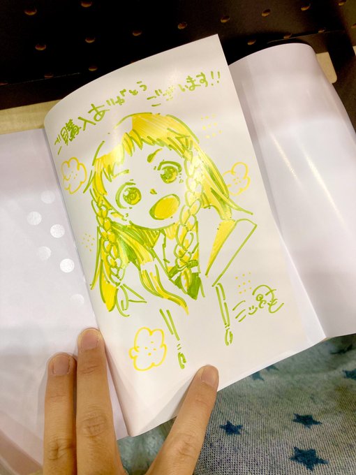 ブースで泣きそうになってる…ありがとうございます、ありがとうございます… 実はサインとイラストを表2…表紙をめくって右側のページに入れています! 本日コミティアでの販売分も描いてあります! というかブースで更に描いていきます…! #COMITIA139 #COMITIA