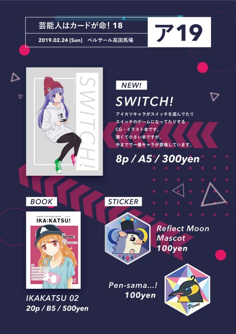 17 24 お品書きです。17で出なかったハイレルさんのステッカーも出ます!当日は【ア19】よろしくお願いします〜! #芸カ18 #芸カ18お品書き 19/02/20 23:27
