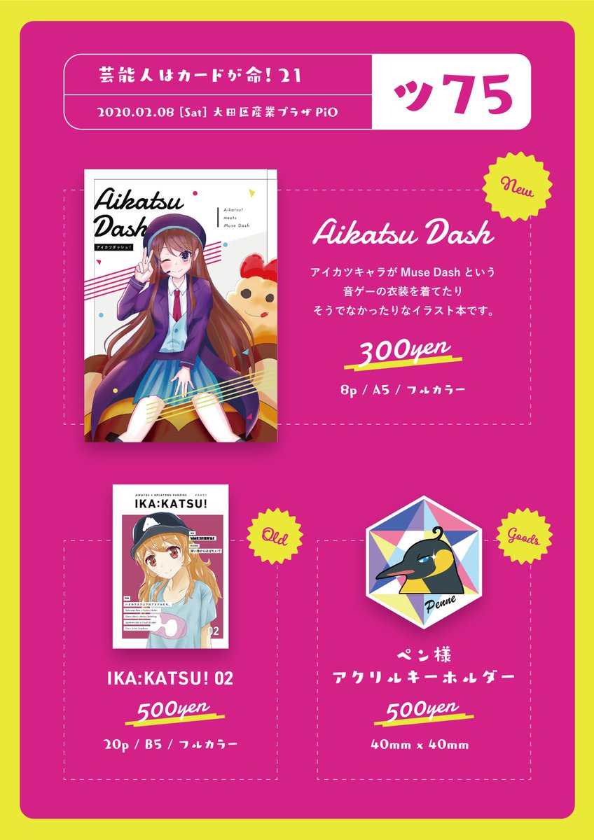 10 12 お品書きとサンプルです~!Muse Dash好きな方は遊びに来てください…!当日は【ツ75】よろしくお願いします〜! #芸カ21 #芸カ21お品書き 20/02/07 08:55