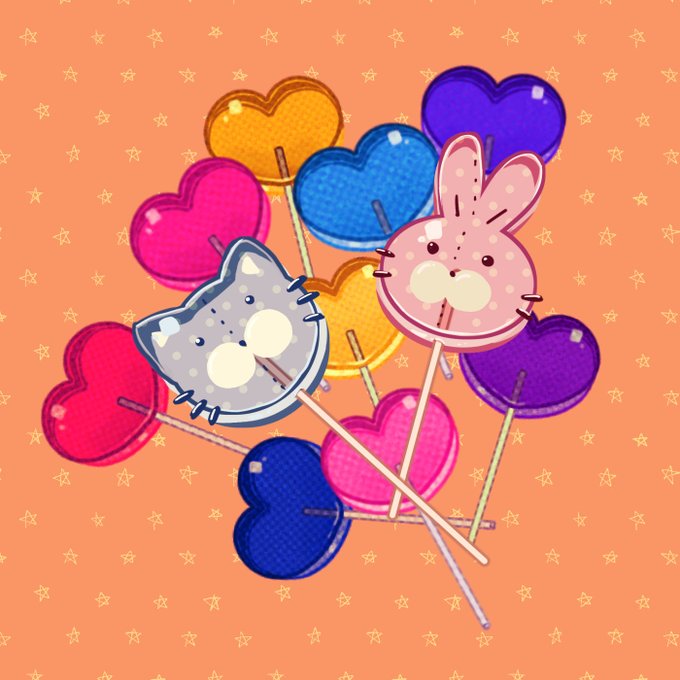 うさぎとねこのロリポップ🍭 #絵描きさんと繋がりたい #イラスト好きな人と繋がりたい
