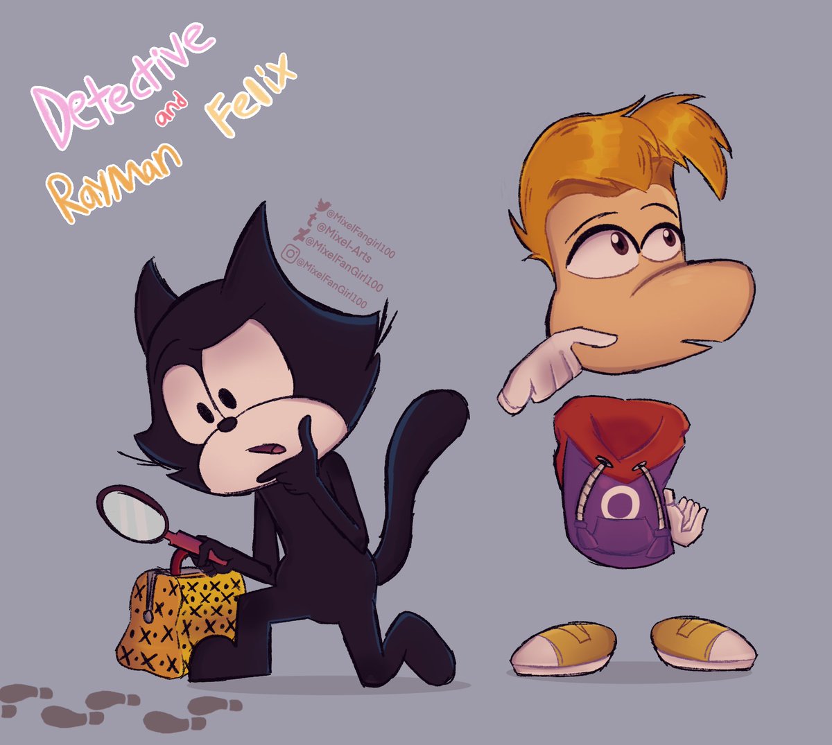 I think they be friends and start a detective business #myart #artistsontwitter #rayman #felixthecat #fanart #crossover