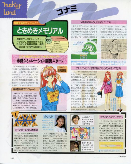 当時の雑誌スクラップその1。なんの雑誌か忘れましたが、私が持っている中で一番古い記事です。 前制作のグラⅡは巻頭4ページバーン!だったのですが、オリジナルということで、記事も半ページなんです。 タイトル画面も仮だし、白黒画像は企画書に使った絵なんです(笑)#ときめきメモリアル27周年