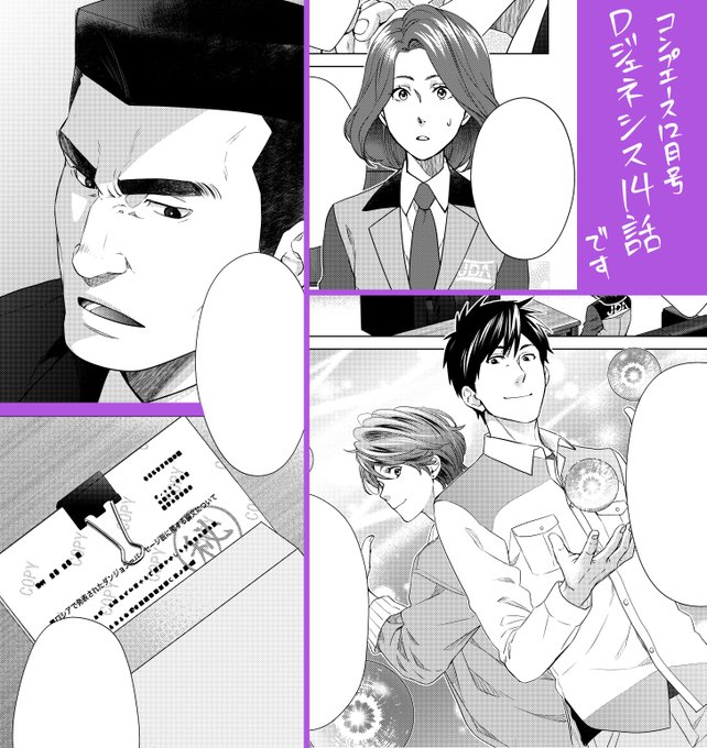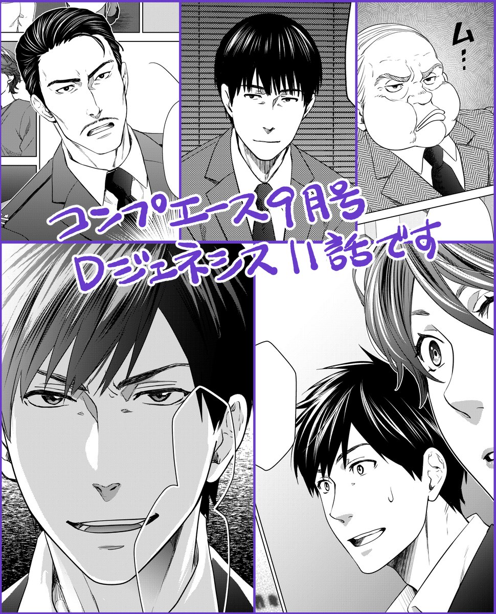 8/26発売のコンプエース10月号に『Dジェネシス ダンジョンが出来て3年』第12話載ってます。 JDAとの交渉本番。本編は相変わらずおっさん祭りなので画像は扉絵と比較的若い人のカットを寄せ集めたよ