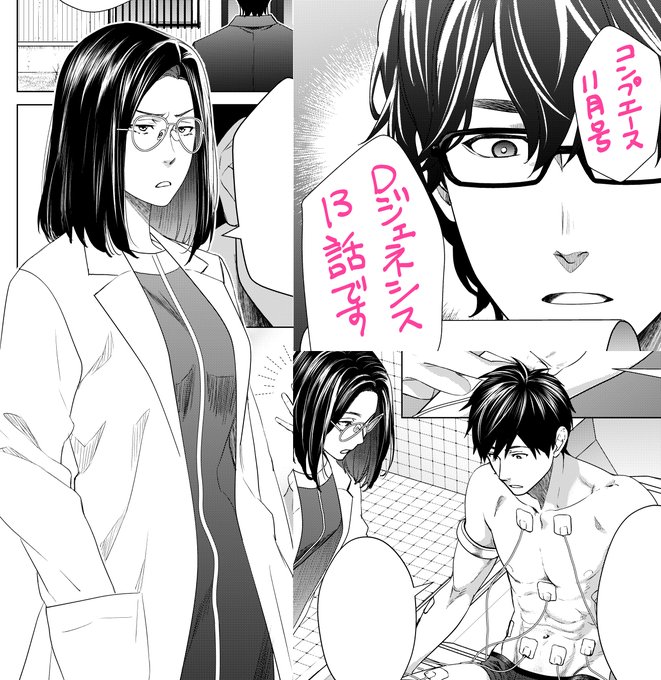 27 53 コンプエース11月号。今月は9/25発売です。『Dジェネシス ダンジョンが出来て3年』第13話載ってます。 今回は常盤ラボ回。翠さんと中島くんと出番の半分くらい裸な芳村さん。そしてサイモンチーム 21/09/25 00:00