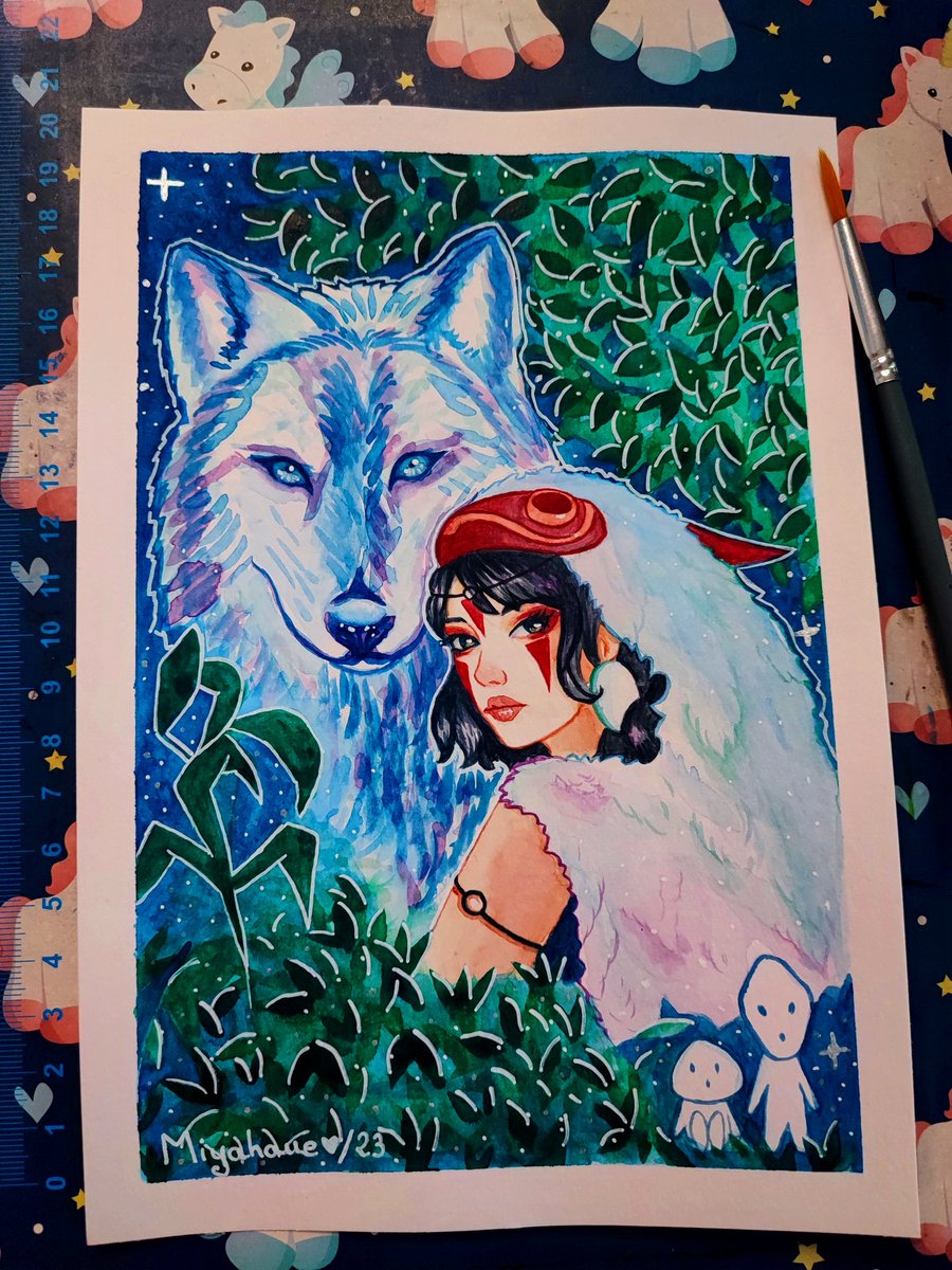 Seguimos practicando con las acuarelas, este ha sido complicado de c... XD La princesa mononoke del studio gibli ❤️ ojalá y os guste 😊 Se agradece mucho muchito los like's y RT's para que mi trabajo llegue a más gente 🥹 #mononoke #ArtistOnTwitter #art #watercolor #gibli
