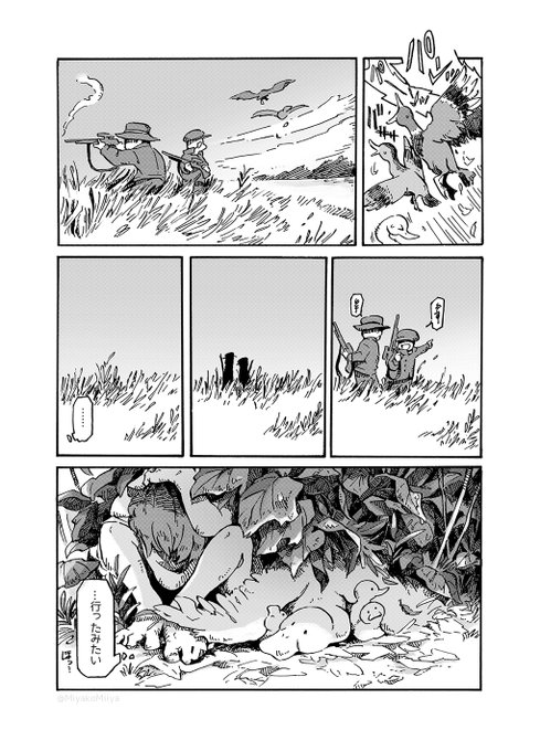 のんびりと平和に暮らす兄妹のもとに、猟銃を持った男がやってくるお話… #ヒツジ飼いの兄妹 短編漫画みっつめ、公開中です🗡️ comics.pie.co.jp/series/hitsuji/