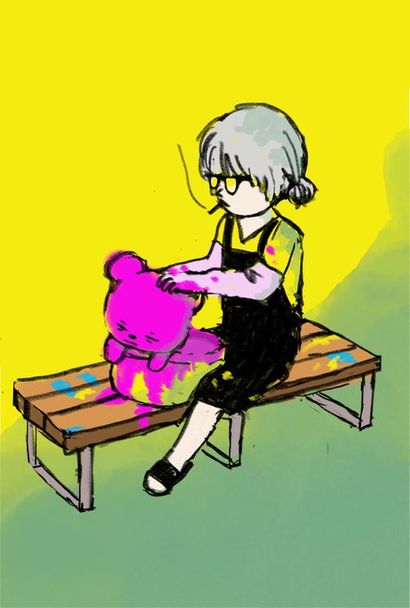 0 5 うしちゃんとブリー🧀 #イラスト #digitalart #illustration #メガネ #テディ 22/08/20 17:18