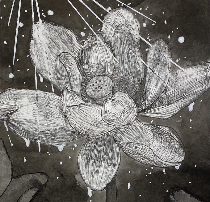 離れゆく愛 ~lotus~ せんせに褒められちゃった!!! #イラスト王国 #モノクロ #イラストレーション