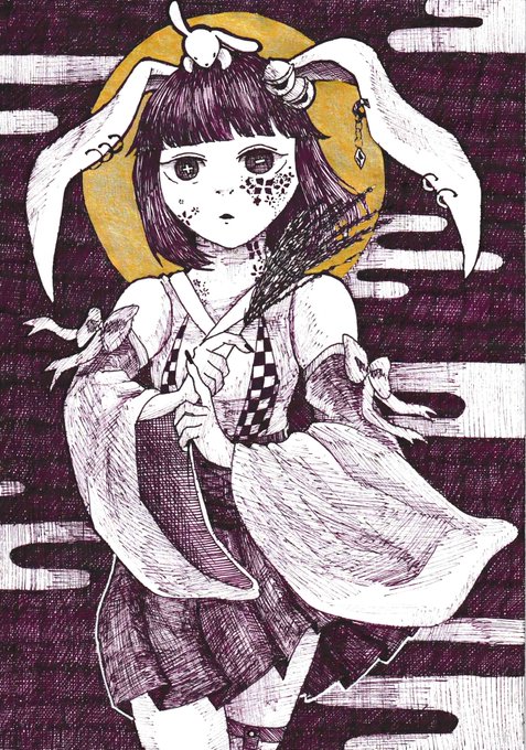 8 28 ナニミテ ハネル? #イラスト王国 #イラスト #アナログイラスト #ペン画 #絵柄が好みっていう人にフォローされたい #女の子イラスト #うさぎ #girl #illust #illustration #rabbit #moon 22/08/29 18:11