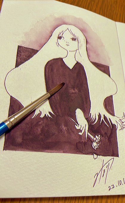 3 16 不安の種 #絵墨 #イラスト #墨彩画 #墨 #女の子 #illustration #illust #artwork #art 22/10/15 21:22