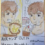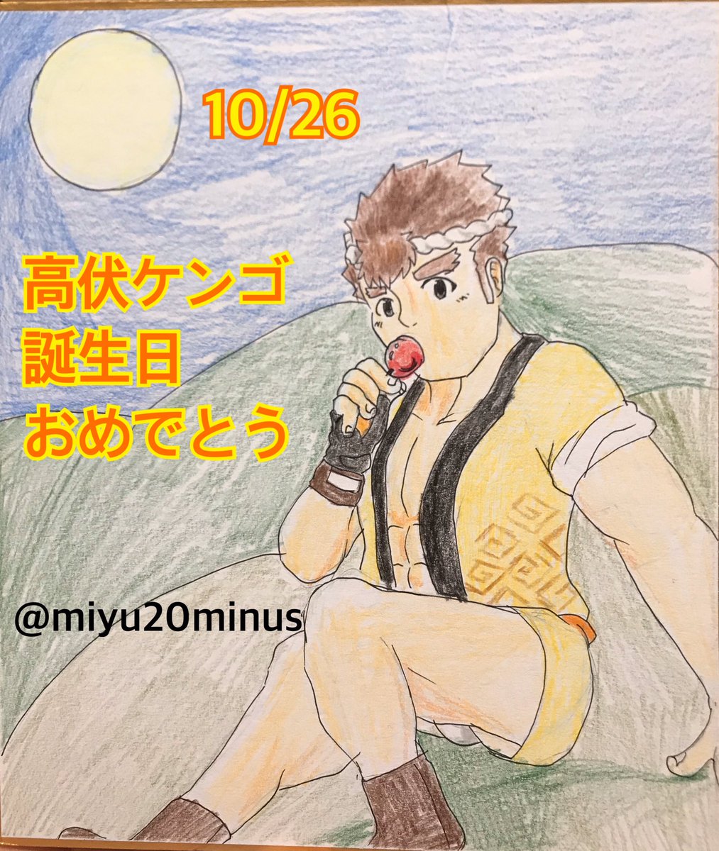 #高伏ケンゴ生誕祭2020 とりあえず、新イラスト完成ー♪₍₍ (ง ˙ω˙)ว ⁾⁾ 今回のイベントの法被姿でりんご飴食べてるケンゴを描きましたー♪₍₍ (ง ˙ω˙)ว ⁾⁾ 座り方とか持ち手とかが難しかった💧_(:3 」∠)_