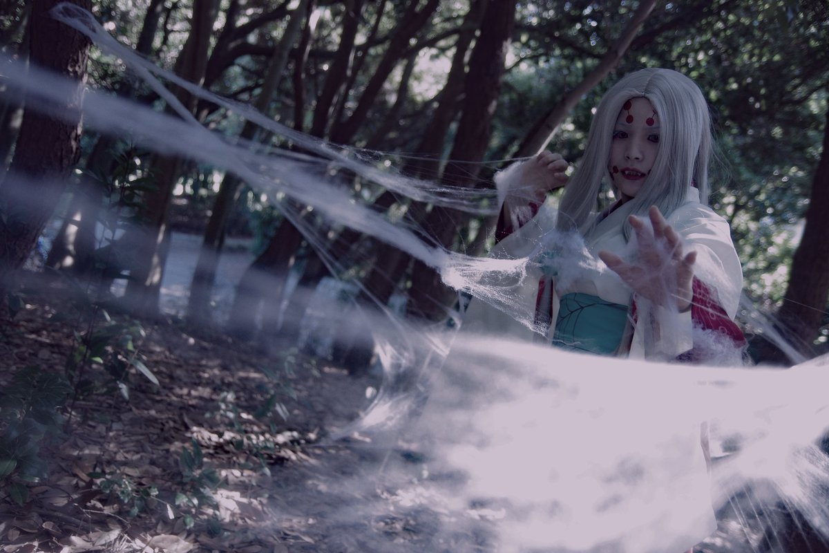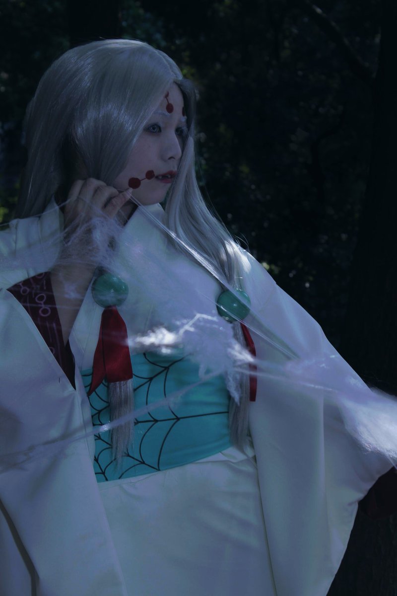 13 31 『あたしの糸束はね 柔らかいけど硬いのよ』 #鬼滅の刃 #コスプレ 姉蜘蛛ちゃん 撮影:鵯さん(@hiyodori_tf )/ゆーきさん(@kemonodou ) 17/10/25 19:40
