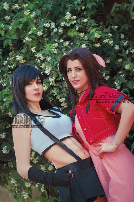Also Reno and Tifa!!!! @LauraNiko as Aerith ❤️ #cosplay #FinalFantasyVII #FinalFantasy7Remake #finalfantasy7