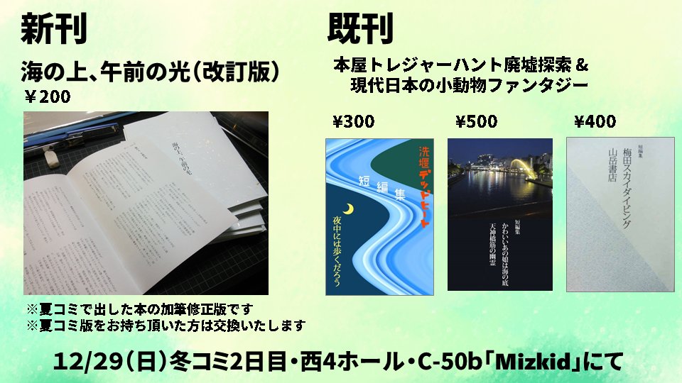 【冬コミ告知】おしながきを更新しました。本のあらすじ紹介やサンプルPDFをコミケWebカタログでご覧ください。 webcatalog-free.circle.ms/Circle/14822746 #C97 #コミケ #コミケ97 #創作文芸 #C97WebCatalog