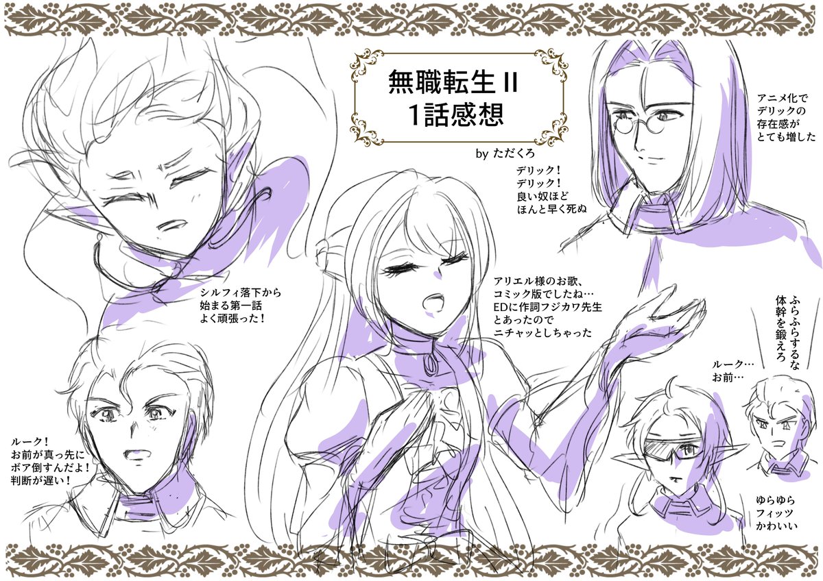 無職転生Ⅱ、1話の感想絵です。 アニメになることで、デリックやグラーヴィル達、脇キャラの存在感がグッと増したなと思いましたよ! さーて今週のルイジェルドさんは? できるだけ毎週描きたいけどどうかな… #無職転生FA #MushokuTensei