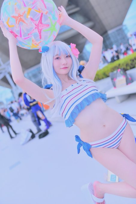 いなり ちゃん @aico_lycoris がうる ぐら / hololive EN 初めて撮ったとき以来のさめちゃん! 生まれ変わったらビーチボールになると決めた日。 細い!可愛い!神! #お前もいなりの眷属にならないか(cv猗窩座) #C100 #C100コスプレ #コミケ100 #コミケ100コスプレ