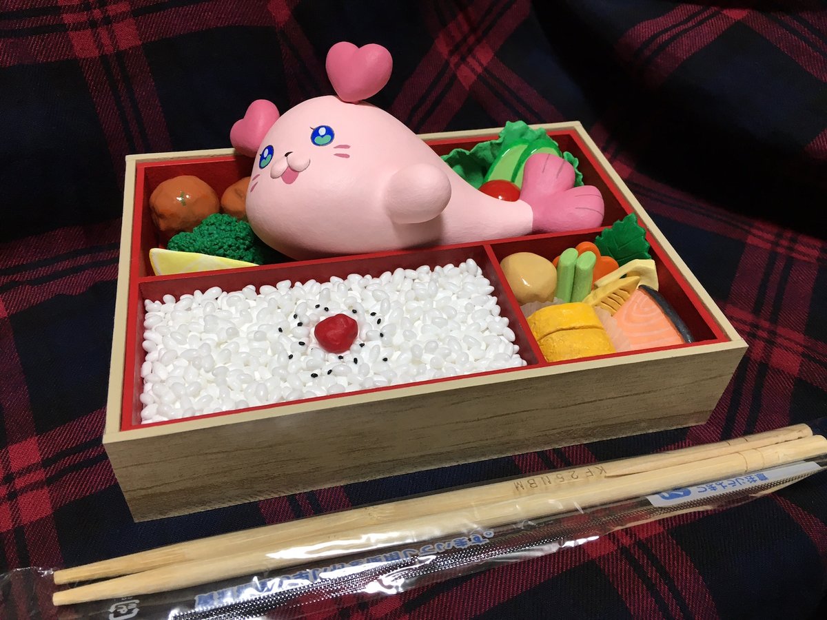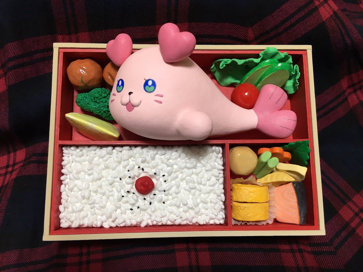 70 181 くるるん弁当を作ってみました みのりん先輩ver. 容器:厚紙、スチレンボード(底上げ)、リメイクシート木目調 具材:100均軽量粘土、アスミホイル(芯材)、木工ボンド(ごはん固め)、トレーシングペーパー、爪楊枝 塗料→ジェッソ、アクリル絵の具、ニス 21/12/04 20:59