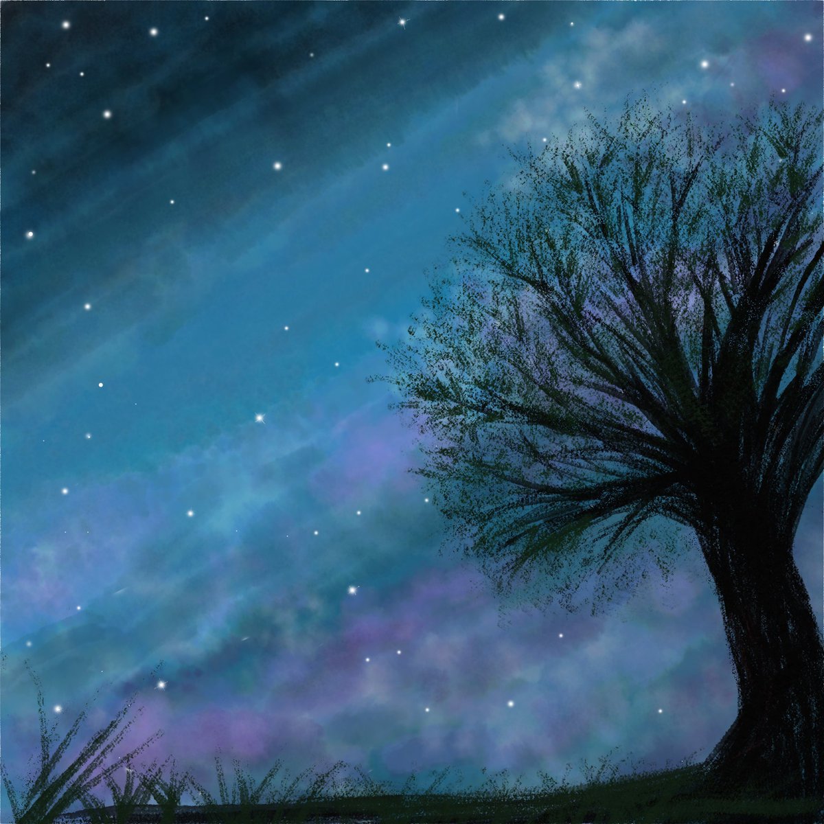 最近なかなか絵を描く時間がなくプチストレスでしたが 今日は無心になって夜空を描きました🌌 夜空の表現難しいけど楽しい✨ #デジタルイラスト練習中 #AdobeFresco #イラスト #illust #イラスト好きさんと繋がりたい #絵描きさんと繋がりたい