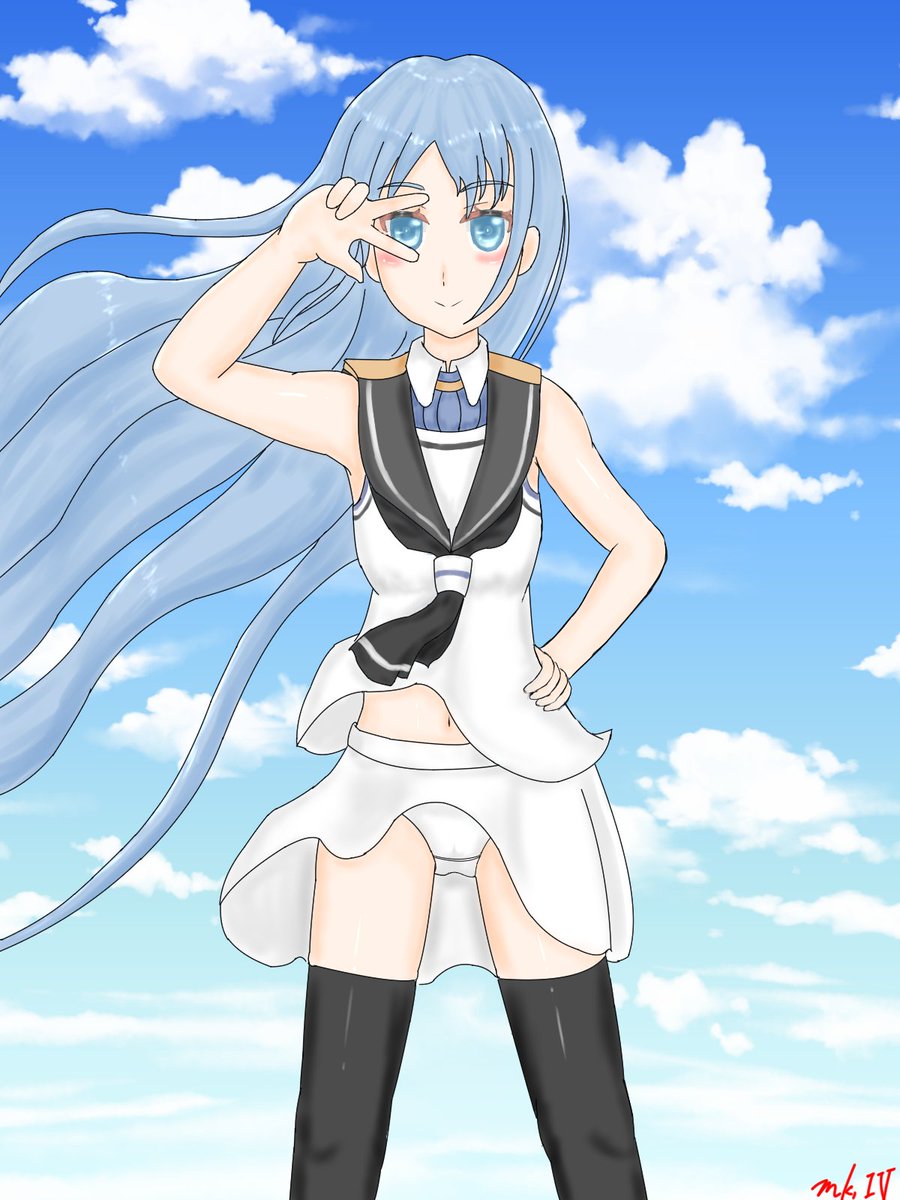ドヤ顔で横ピースを決めてるけど神風が吹いてスカートがめくれたさみちゃんの図 フライングしても時間は仕上がる時間はあまり変わらない 220min.(2000~2340) #艦これ版真剣お絵描き60分一本勝負_20201003 #艦これ #五月雨