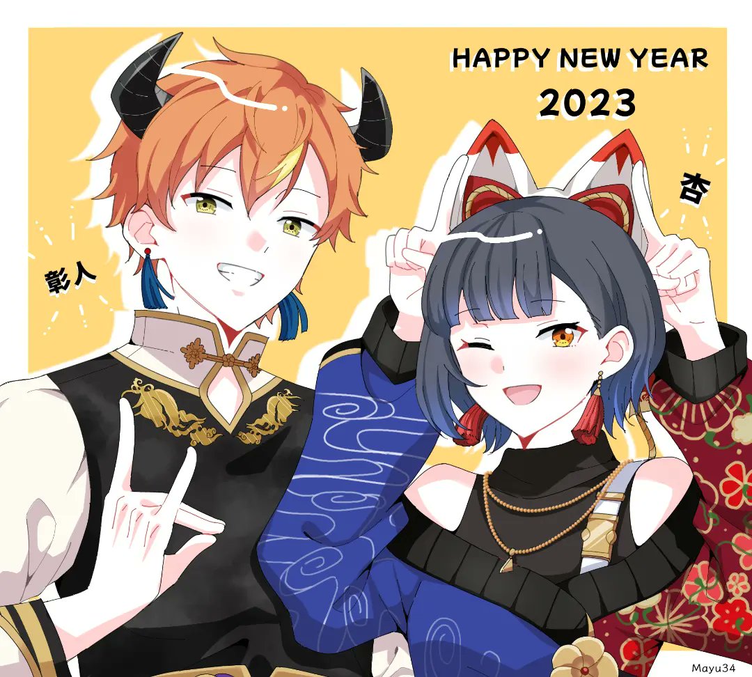 54 226 明けましておめでとうございます!🎆 #彰杏 #prsk_FA #prsk_NL #prsk_HL 23/01/01 00:09