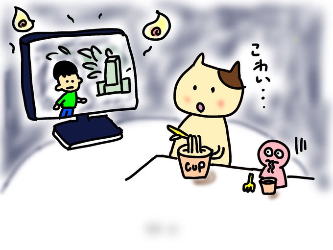 0 2 夜のカップ麺と心霊系YouTubeは相性◎ #イラスト #カップ麺 #心霊系YouTube 22/08/29 14:08