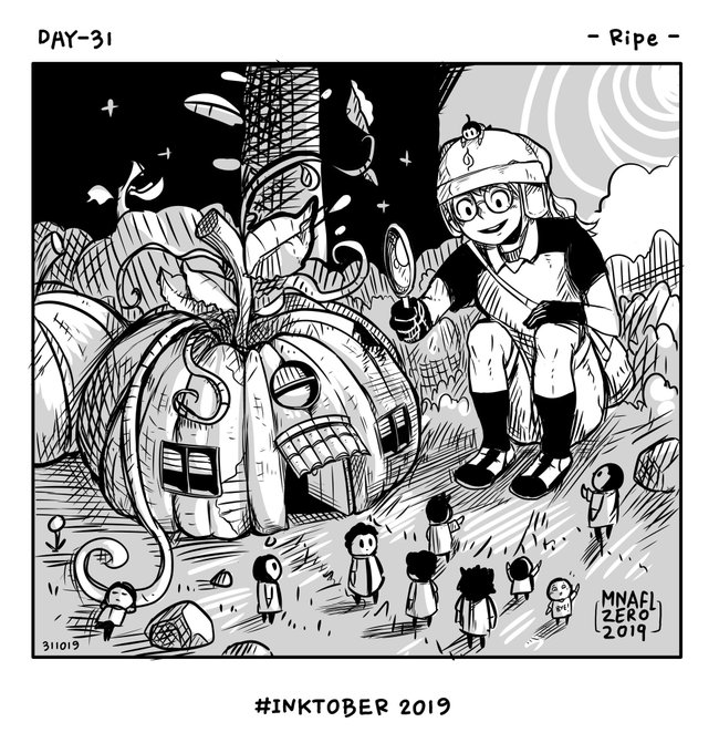 Day 31 - Ripe Selina is a plant researcher, she found a ripe pumpkin, which was made to live by a small creature in the cave - @inktober #inktober #inktober2019 #inktoberindonesia #ink #digitalink #digitalart #originalcharacter #artwork #challenge #blackwhite #Ripe