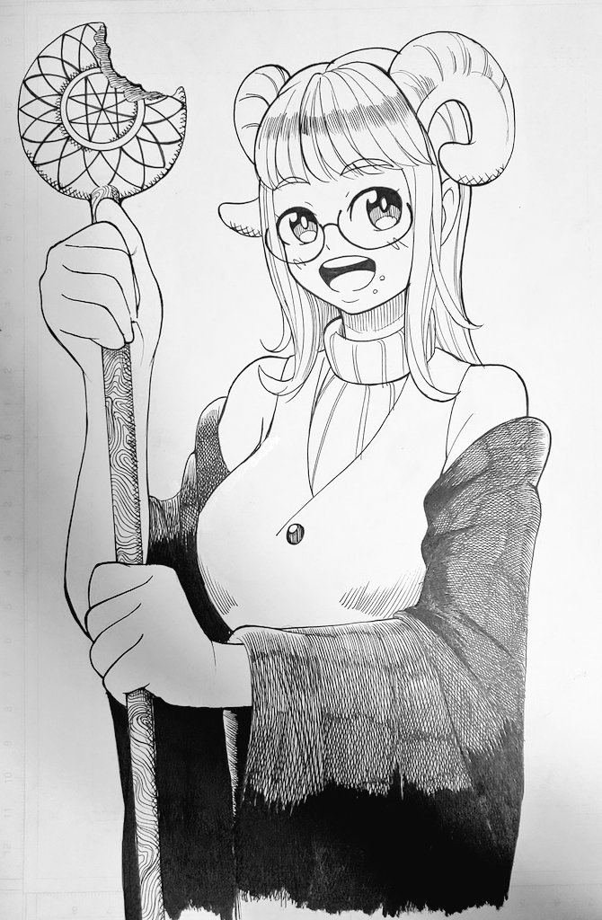 新作漫画のキャラ ペン入れ試運転 カケアミしまくった(笑) #Gペン #アナログ #絵描きさんと繋がりたい #カケアミ