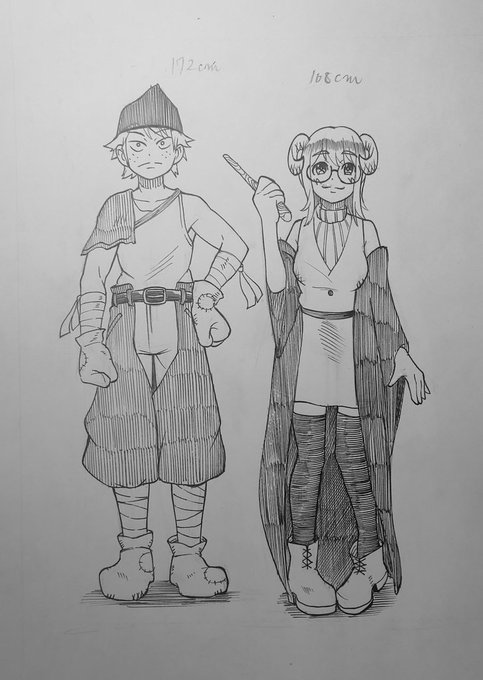 1 16 キャラ身長比較 多少小さい絵は丸ペン使うべきだな #アナログ #絵描きさんと繋がりたい #オリキャラ 22/03/23 01:11