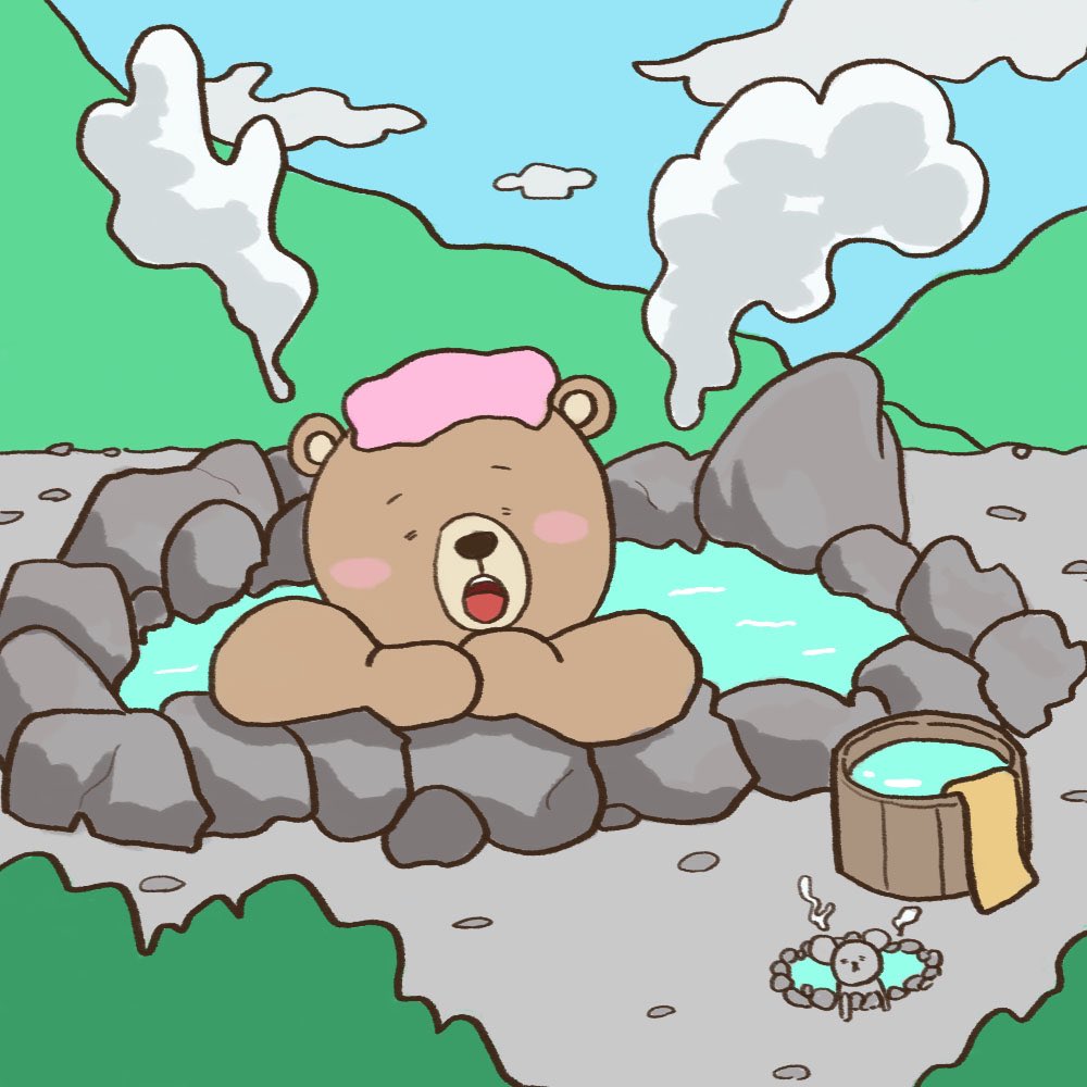 おんせんでゆたり #イラスト #温泉 #くま #ねずみ