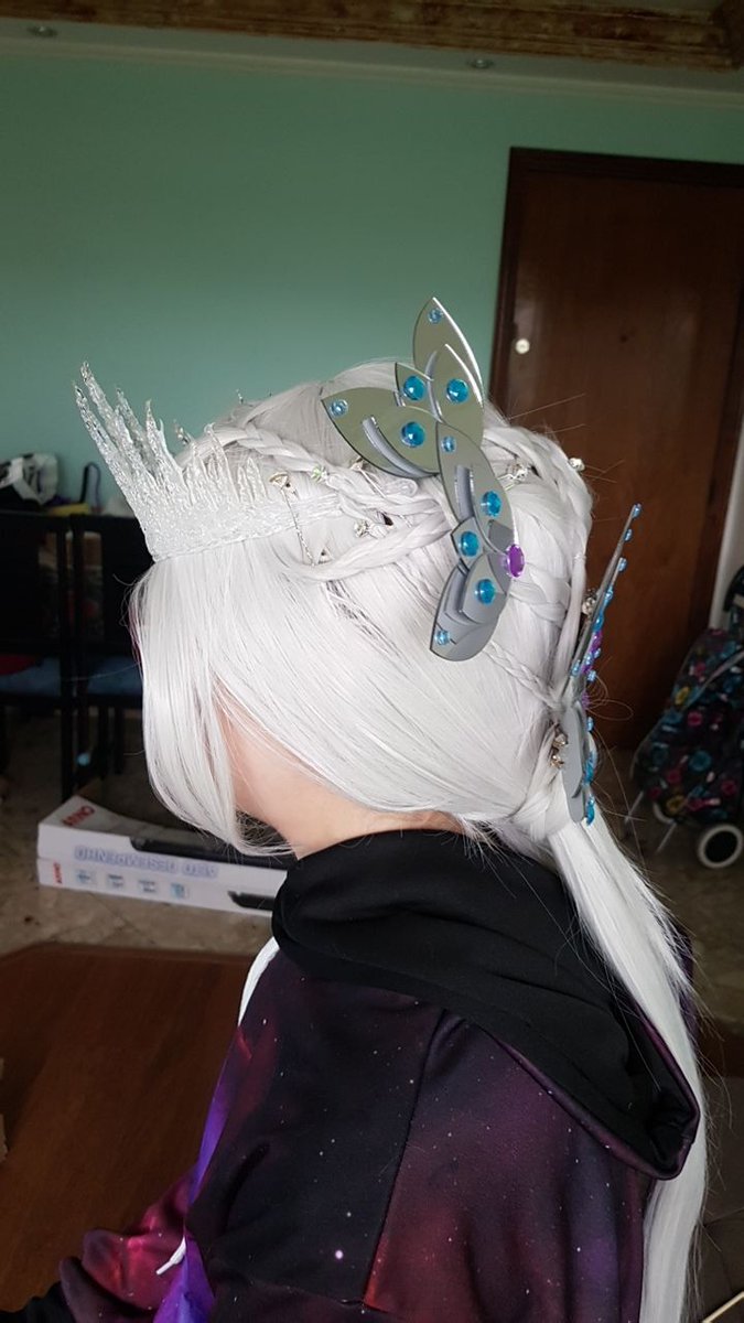 Hoje foi dia de testar os enfeites de cabelo de espelho e inventar penteado. #SnowQueen #Cosplay #OC