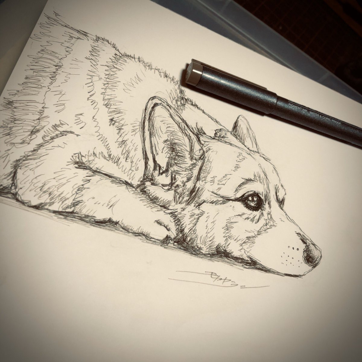 新作【大切な時間】の彩色前のモノクロバージョン☆ ●何気ない日常♪それはかけがえのない大切な時間☆ #コーギー #コーギー絵画 #モノクロ #モノクロバージョン #ペン画 #挿絵 #絵画 #アート #アートでささやかな癒しを #モカヤング #モカヤングワールド